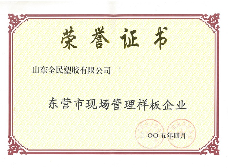 市級現(xiàn)場管理樣板企業(yè)榮譽市級2005.04